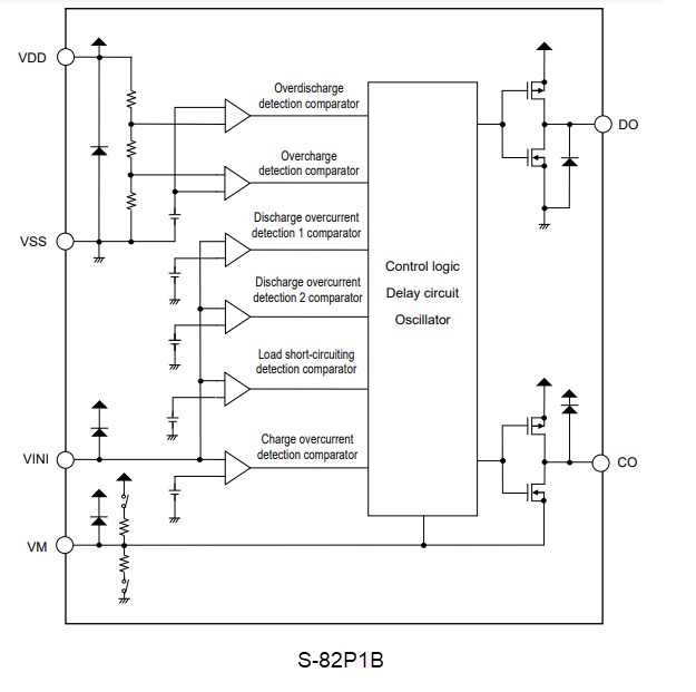 - Release voltage of discharge overcurrent status - discharge overcurrent release voltage (VRIOV) = VDD × 0.8V (typical)