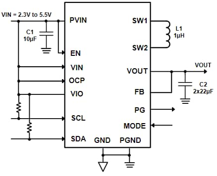 - Eingangsspannung von 2,3 V bis 5,5 V VIN