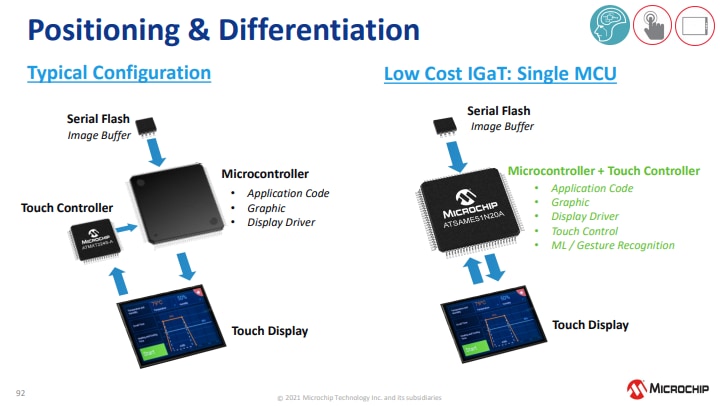 Die Microchip Technology SAM E51 Integrierte Grafik and Touch (IGaT) Curiosity Evaluation Kit ist eine Hardware-Plattform zur Evaluierung des SAME51J20A Mikrocontrollers. Das Kit integriert einen kompletten Touchscreen, TFT-Grafiken und eine Touch-Oberfläche in einer Single-Chip-Lösung. Es wird von der MPLAB ® X Integrated Development Umwelt (IDE) unterstützt. Das Kit bietet einen einfachen Zugriff zu den Funktionen des SAME51J20A, um das Bauelement in ein kundenspezifisches Design zu integrieren. Das Integrierte Grafik- und Touch Curiosity Evaluierungskit enthält einen Onboard-Debugger. Für die Programmierung des SAME51J20A-Bauelements sind keine externen Tools erforderlich.Merkmale