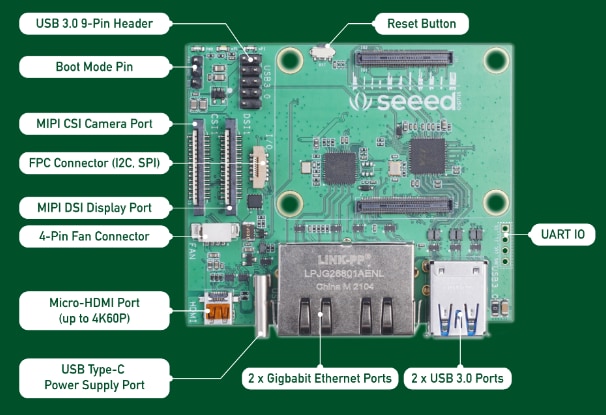 Das Seeed Studio Dual-Gigabit-Ethernet-Trägerboard ist mit Dual-Gigabit-Ethernet-Anschlüssen und Dual-USB-3.0-Anschlüssen ausgestattet, die sich hervorragend für weiche Router-Applikationen eignen. Dieses Trägerboard wird vom Raspberry Pi Rechenmodul 4 betrieben. Das Dual-Gigabit-Ethernet-Trägerboard verfügt über On-Board-Dual-USB-3.0 mit einer zusätzlichen 9-Pin-USB-3.0-Stiftleiste für weitere externe Anschlüsse. Dieses Trägerboard bietet eine große Auswahl von I/O-Peripherien, einschließlich MIPI CSI, MIPI DSI und Mikro-HDMI zur Verbindung von Displays/Kameras. Andere Peripherie umfasst eine standardmäßige 9-Pin-USB-3.0-Stiftleiste für mehr USB-Erweiterung, einen Mikro-SD-Kartensteckplatz und einen FPC-Steckverbinder. Das Dual-Gigabit-Ethernet-Trägerboard eignet sich hervorragend für HTPC-Hersteller, Linux-Entwickler, Software-Router-Enthusiasten und Raspberry Pi-Benutzer. Zu den typischen Applikationen gehören Software-Router, Internet der Dinge (IoT) und Smart Homes.Merkmale