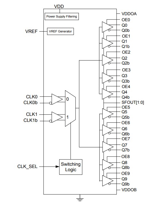 - Any-format Inputs (LVPECL, Low-power LVPECL, LVDS, CML, HCSL, LVCMOS)