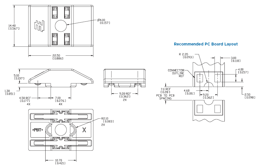 - Steckverbindung passt in eine 16,50mm [,650] breite Leiterplatte
